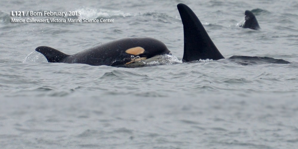 Northern Resident orcas off of Race Rocks, Sooke, BC on 11/8/13. (left) Northern Resident G2 and Pacific white-sided dolphin off of East Sooke Park. Photo by Mark Malleson, Prince of Whales;