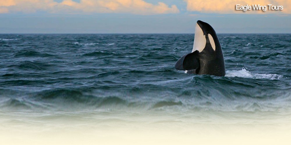 Eagle Wing Tours - Victoria, BC We are Wild 4 Whales! The truth is, not all whale watching tours are created equal.Eagle Wing Tours is Victoria, BC's 1st multiple award winning whale watching tour company. Guaranteed Whales & guaranteed adventure with the most thrilling, environmentally responsible, sustainable, professional, comfortable, and safe marine adventure tour company on Vancouver Island. Don't take our word for it, we have been rated as the #1 whale watching tour company in Victoria on Trip Advisor since 2007. As passionate stewards of a world renown marine environment we are motivated to provide our guests with more than just, "a look at the whales". Eagle Wing Tours was Canada’s first 100% carbon neutral whale watching tour company and the only one to support 1% For the Planet. You will be treated to attentive service by dedicated professionals who have spent their lives learning the intricacies of the local ecosystem. This locally owned and family operated marine adventure eco-tourism company offers the only sustainable, premium experience for travellers demanding more. We realize that most of our guests have traveled great distances at high cost to experience what we have the privilege of doing daily. We respect, and ultimately are grateful for this and so with every departure we go above and beyond - maximizing guest satisfaction, overall comfort, and delivering the "WOW" factor!- at the center of the world's highest concentration of Killer whales,orca, (Blackfish) and other whale (cetacean) species in the Salish Sea, such as: Humpback whales, Gray whales, and Minke whale. Eagle Wing's mission is to work with purpose and passion on behalf of all wildlife in the Salish Sea, encouraging our guests to become more involved in the education and conservation of a sustainable, healthy, and more balanced marine eco-system... Inspiring the conservation of our marine environment, with a thrill! PASSION - EXPLORE - INSPIRE |