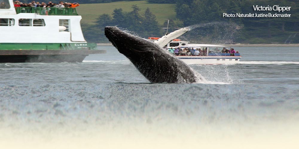 Victoria Clipper - Seattle, WA and Victoria, BC Conveniently departing from downtown Seattle, your San Juan Islands Whale Watching & Sealife Search Day Trip begins with a scenic Victoria Clipper cruise through the Puget Sound and scenic Deception Pass to an area world-renowned for its resident pods of orcas. With the guidance of a trained onboard naturalist, you will be taken on a Whale and Sealife Search where in addition to whales you will be on the lookout for migratory birds, bald eagles, the playful Dall's porpoises, seals, otters and other area wildlife. Also included is a stopover in the charming seaside village of Friday Harbor on San Juan Island. If you're in Seattle and want to head north to Victoria to see wildlife, why not leave your car behind and get there in comfort, style and with time to spare? Take one of our high-speed passenger-only Victoria Clipper ferries for a fast trip with a host of great amenities. When you travel with us, you'll enjoy a three-hour cruise through Puget Sound and into the Strait of Juan de Fuca on your way to Victoria's Inner Harbour. Once there, hop onto any of a number of great whale watch boats in Vic, including our partner operator, Prince of Whales. Since, Clipper Navigation, Inc. has provided transportation, tours and accommodation packages for over seven million customers. |