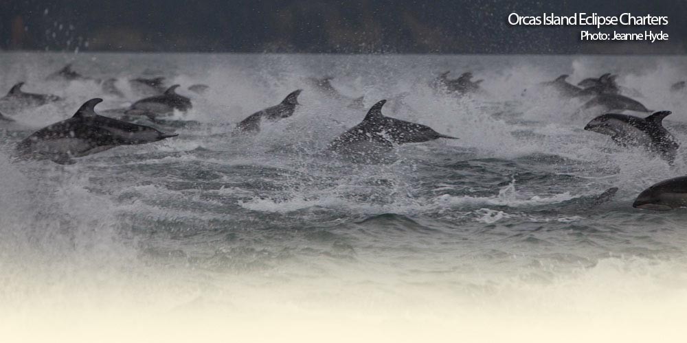 Mystic Sea Charters - Anacortes and Langley, WA Join us for a whale of an adventure! Mysterious in mist or sparkling in sunshine, the Puget Sound and San Juan Islands are always changing and always beautiful. Come aboard the classic 100-foot Mystic Sea for our guaranteed whale watch and wildlife cruise and enjoy a fun and relaxing day on the water. Learn about the history, lore, and hidden nooks of this unique area from our friendly and knowledgeable crew, and make memories for a lifetime! We explore 80-100 miles on our cruises and have a spectacular array of wildlife that migrate into these calm waters at various times and stages throughout the year; everything from bald eagles and puffins, to Pacific white-sided dolphins, Dall's porpoise and Stellar sea lions. We have several different types of whales in addition to the 82 Southern Resident orcas, including minkes, humpbacks, gray whales, and transient orcas... the true "killer whale"! Choose your destination... whether it's winding your way up the Guemes Channel or through the pristine beauty and serenity of the San Juan Island paradise or cruising to the awesome splendor of Deception Pass with its rock-hewn cliffs and rushing, swirling, eddies. We'll depart from historic Anacortes, Washington with its quaint shops, delightful lodging, and unique ambiance. A cruise you'll remember for a lifetime... whale watching, lighthouse cruises, birdwatching, and more. As we value quality over quantity, we limit the number of people on our daily cruises to 60 instead of filling the boat to maximum capacity (77 people); this allows for more space so everyone can be comfortable while cruising through the San Juan Islands. The resident orcas of J-, K- and L-Pods can move up to 100 miles in a day, so some days they are only 20 minutes away from Anacortes, and other days they can be three hours away - near Victoria or Point Roberts. If we need to go the extra mile or take the extra hour to get you whales, we will. We don’t make claims to be number one – we just find you whales and make sure you have fun doing it! |